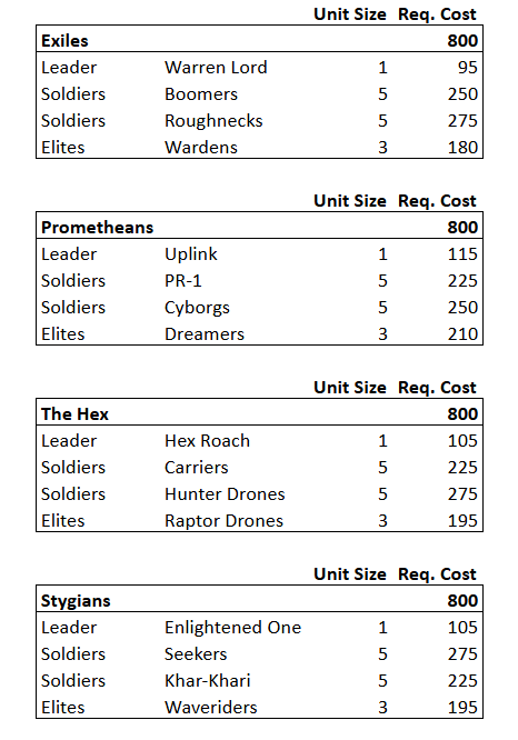 If you're trying out AoT for the first time and want to jump right into the action, I don't blame you! Below are some premade beginner lists for each faction at 800 requisition cost.